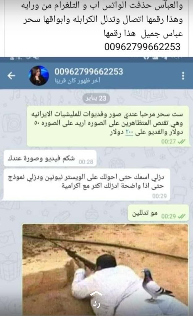 قناة دجلة الفضائية تدفع اموالا عن طريق الدلالة سحر عباس من اجل الحصول على صور وفيديوهات لاعمال الفوضى في العراق