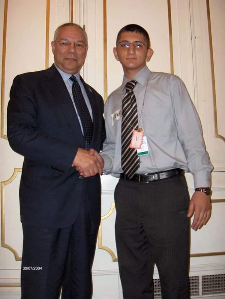 حصلت وكالة انباء براثا على صور لهذا المرتزق العميل تجمعه باثنين من اعتى المجرمين عرفتهم البشرية وهما جون نغربونتي مؤسس مجاميع الاغتيالات في كل بقاع العالم وما فيتنام الا مثال على ذلك وما قام به من مجازر بشعة والشخص الثاني هو وزير الدفاع السابق في زمن جورج بوش الاب ووزير الخارجية الاسبق في زمن جورج بوش الابن كولن باول وهذه الصور التقطت عام 2004
