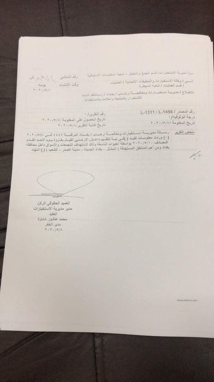 الاستخبارات تحذر من هجمات ارهابية محتملة في بغداد