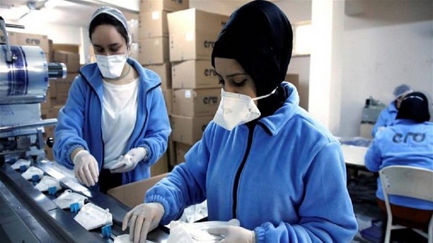وقال مدير الدائرة الفنية في الوزارة ناصر ادريس الحسيني في مقابلة أجرتها معه وكالة الأنباء الرسمية، تم "تشغيل اربعة خطوط لانتاج الكمامات"، مشيرا الى أن "الوزارة تسعى من خلال مصانعها المتخصصة لزيادة الطاقة الإنتاجية للكمامات لتزويد كوادر الصحة والمواطنين منها".