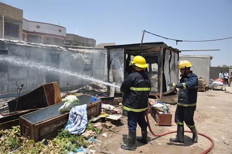 تمكنت فرق الدفاع المدني، من اخماد حريق اندلع في كرفانات مشيدة من مادة السندويج بنل سريع الاشتعال داخل قسم الطبابة العدلية التابع لمستشفى الحسين التعليمي في محافظه ذي قار.