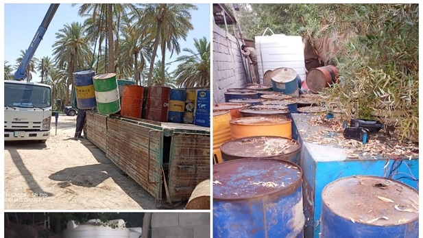 وأضاف البيان، أنه "وُجد بداخل الموقع حيث 3 خزانات سعة 5000 لتر، و 40 برميلاً سعة 220 لتر مملوءة بمنتوج نفطي"، متابعةً أنه "تم تنظيم محضر ضبط أصولي، وما زالت الإجراءات مستمرة للتوصل إلى صاحب الموقع".