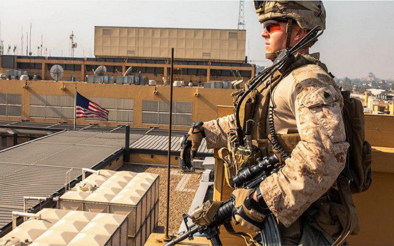 أفاد مصدر أمني، الاربعاء، بانتشار امريكي قرب محيط السفارة وسط المنطقة الخضراء في بغداد.