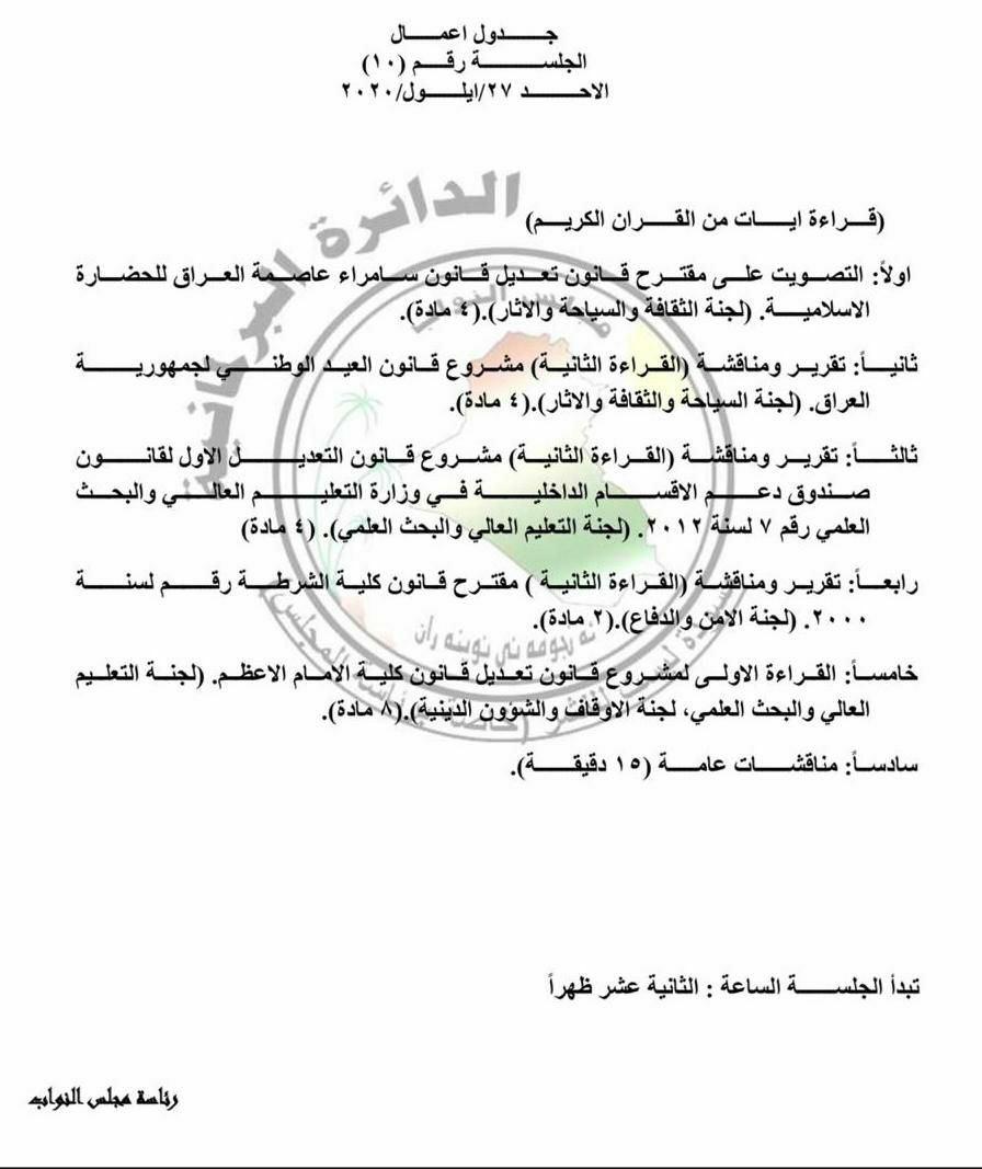 جدول أعمال جلسة البرلمان ليوم غد الأحد