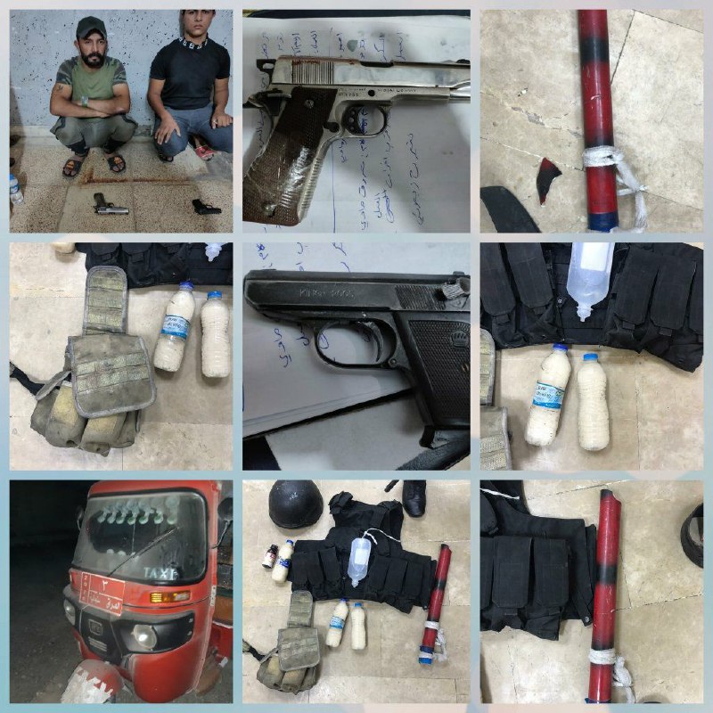 افاد مصدر امني ان قوة تابعة للفرقة الحادية عشر اعتقلت مجموعة من اصحاب التكتك في مدينة الصدر الشعب وحي اور يحملون مسدسات و مولوتوفات و بمبات متوجهين الى ساحة التحرير .
