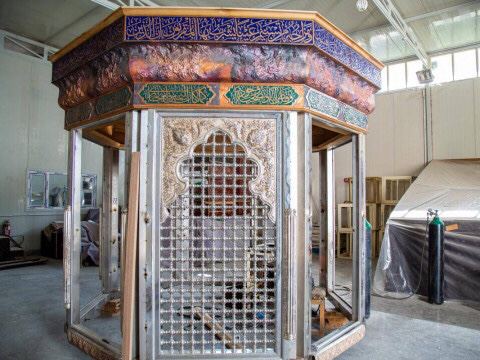 شرعت الملاكاتُ الفنّية العاملة في قسم صناعة شبابيك الأضرحة الشريفة وأبوابها المطهّرة التابع للعتبة العبّاسية المقدّسة، بصناعة شبّاكٍ جديد لمقام الكفّ الأيسر لأبي الفضل العبّاس(عليه السلام) وبمواصفاتٍ ذات دقّة وحرفيّة ومتانةٍ عالية، ليُضاف هذا العمل الى سجلّ الإنجازات الذي تطرّز بعدّة أعمالٍ في داخل العراق وخارجه، وبأيادٍ عراقيّة خالصة تصميماً وتنفيذاً.