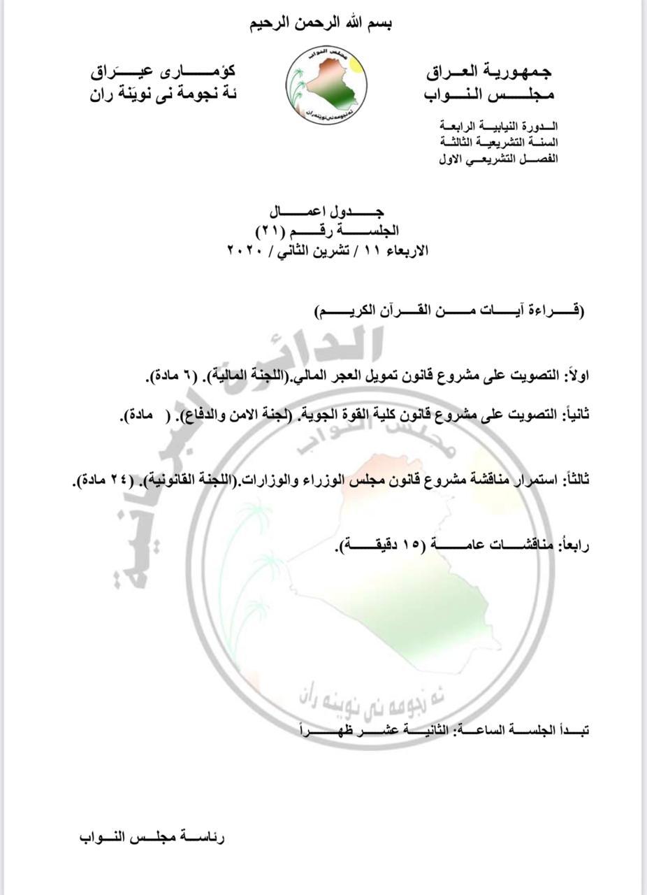وتضمن جدول الاعمال بحسب وثيقة على على اربع فقرات ابرزها التصويت على قانون العجز المالي.