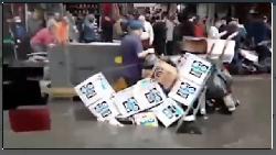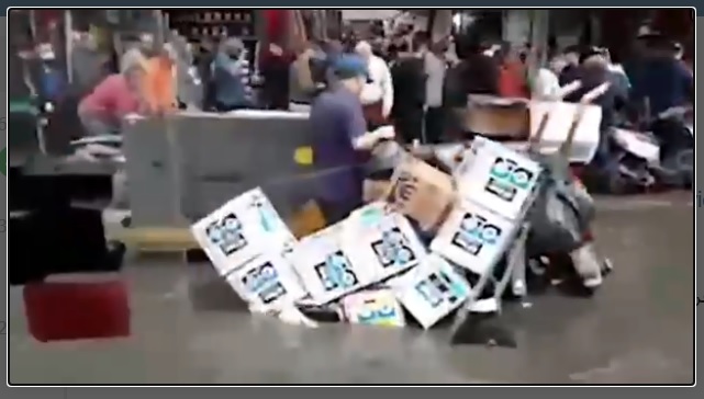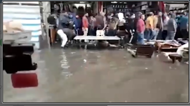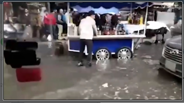 كما بدأت العوائل تتنقل بواسطة الاخشاب في منطقة الحميدية ببغداد بسبب غرق الشوارع .