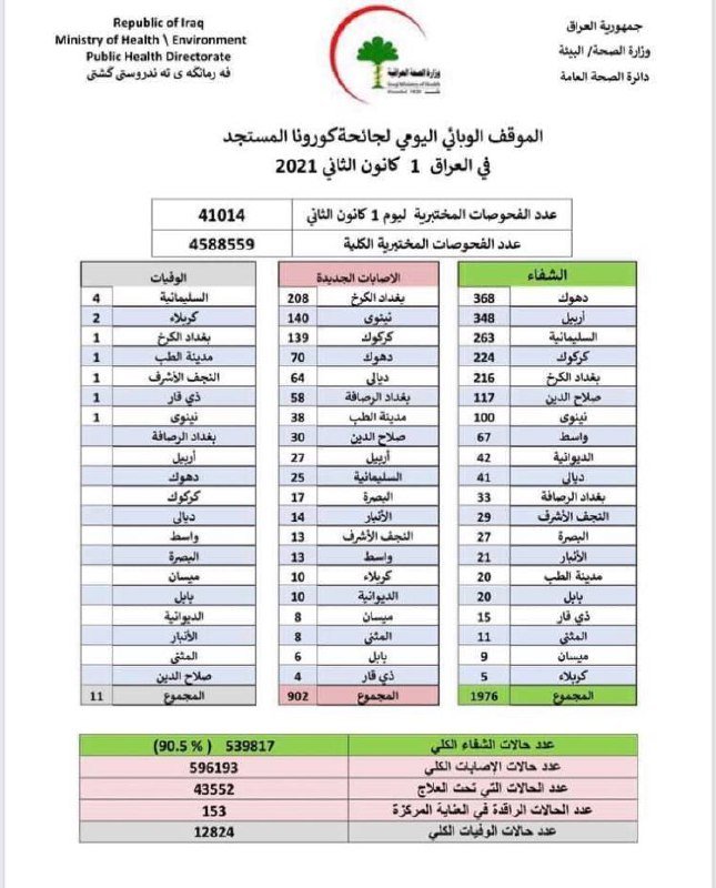 وفي ادناه نسخة مصورة من الموقف الوبائي اليومي: