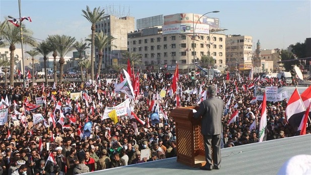 وقال العامري في كلمة له بمناسبة الذكرى السنوية لاغتيال نائب رئيس هيئة الحشد الشعبي الشهيد ابو مهدي المهندس وقائد فيلق القدس الايراني الشهيد قاسم سليماني، "على الحكومة ان تلتزم بتعهداتها باخراج كافة القوات الاجنبية وفي مقدمتها القوات الامريكية وفق جدول للانسحاب"، معربا عن اسفه بالقول "لحد الان لم تتخذ الخطوات اللازمة والمطلوبة".