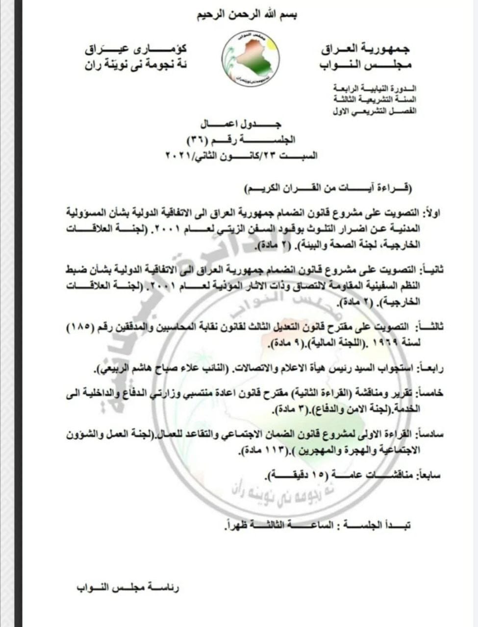 بالوثيقة.. جدول أعمال جلسة السبت لمجلس النواب