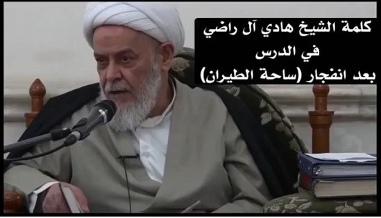 كلمة اية الله الشيخ هادي آل راضي حول تفجيرات ساحة الطيران الارهابية