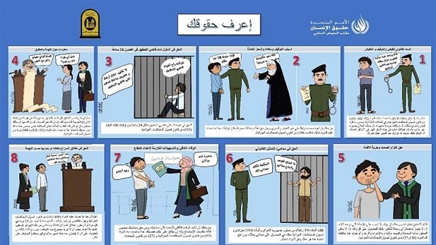 وذكر المجلس في بيان أن "مجلس القضاء الاعلى وبالتعاون مع منظمة الأمم المتحدة وتنسيق المركز الاعلامي لمجلس القضاء الاعلى تم اطلاق حملة (اعرف حقوقك) الاعلانية التي تحاكي ضمانات المتهم".