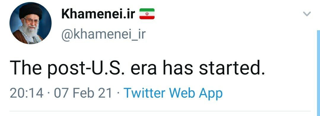 بشر قائد الثورة الاسلامية في ايران اية الله العظمى السيد علي الخامنئي دام ظله المؤمنين كافة وكل الاحرار بافول امريكا وان حقبة ما بعد امريكا قد بدات