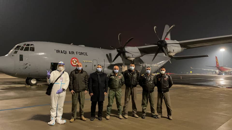 وقالت السفارة في بيان على موقعها الرسمي ان "طائرة شحن عسكرية تابعة لسلاح الجو العراقي هبطت في مطار بكين الدولي لغرض شحنها بكميات من اللقاحات المضادة لكوفيد-19 والتي تبرعت بها الحكومة الصينية لصالح العراق لدعم مؤسساته الصحية لمواجهة وباء كورونا".