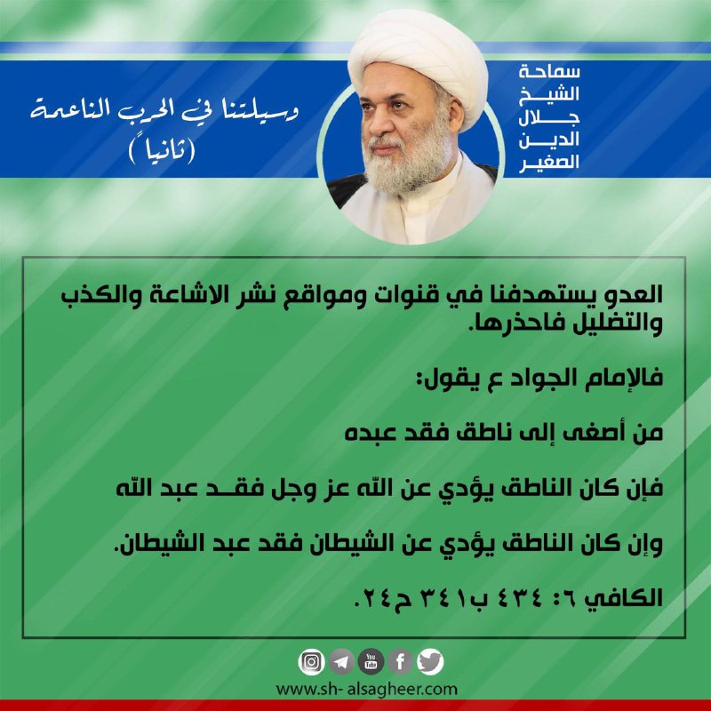 توصيات سماحة الشيخ جلال الدين الصغير لمواجهة الحرب الناعمة التي يشنها الاعداء ضد المؤمنين