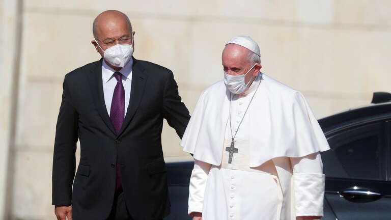 وذكر بيان رئاسي مقتضب أن “رئيس الجمهورية برهم صالح استقبل البابا الذي وصل الى العاصمة بغداد في أول زيارة لبابا الفاتيكان الى العراق”.