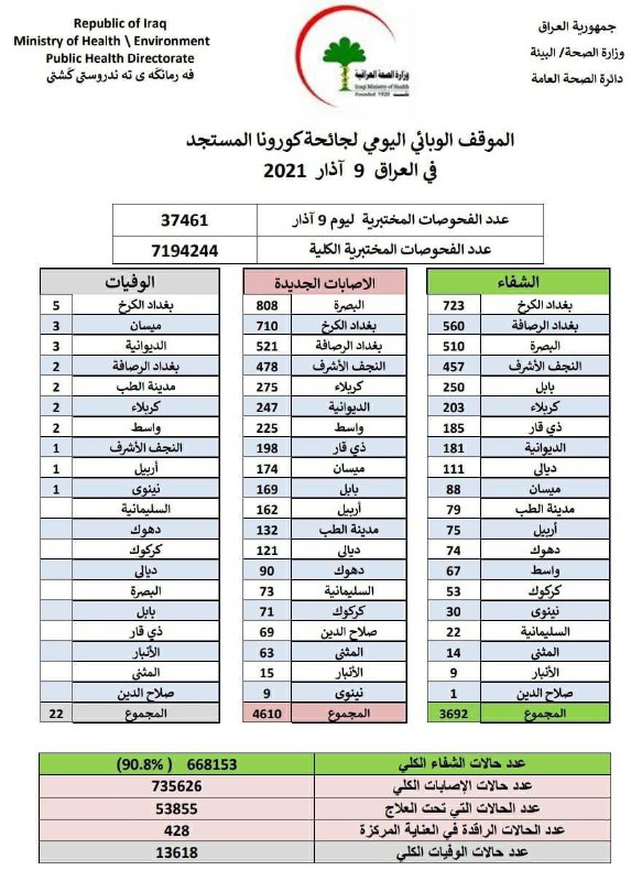 الصحة تسجل 4610 إصابة جديدة بفيروس كورونا