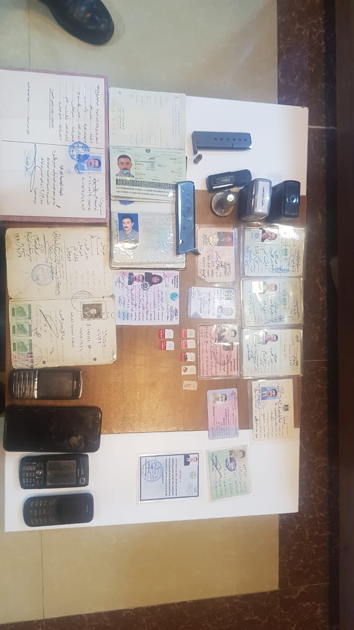 وتابع انه "وأثناء تفتيش الدار تم العثور على وثائق لعصابات داعش تشمل هويات أحوال مدنية وشهادات جنسية وجوازات سفر مزورة واختام تخص تنظيم داعش".