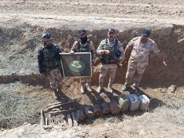 واضاف البيان انه "وفي قرية حردان التابعة إلى ناحية ربيعة، تمكنت مفارز الفوج الثاني لواء المشاة 71 الفرقة أعلاه، من العثور على مخبأ للعتاد من مخلفات داعش الإرهابية ضمّ (3) جلكانات سعة 20 لتراً تدخل في صنع العبوات الناسفة، (9) عبوات ناسفة محلية الصنع، (4) مساطر تفجير، (4) مساطر تفجير، (3) قنبرة هاون عيار 82ملم، (3) رمانات قاذفة ضد الدروع، (2) مقذوفات عيار 155 ملم".