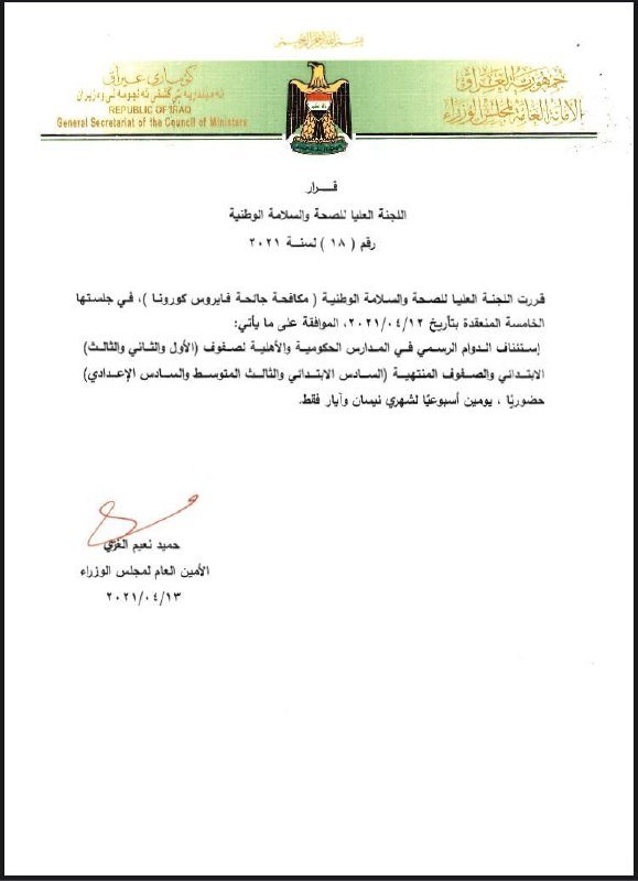 وقررت اللجنة امس الاثنين، السماح لدوام المدارس للصفوف الاول والثاني والثالث ابتدائي والصفوف المنتهية حضورياً.
