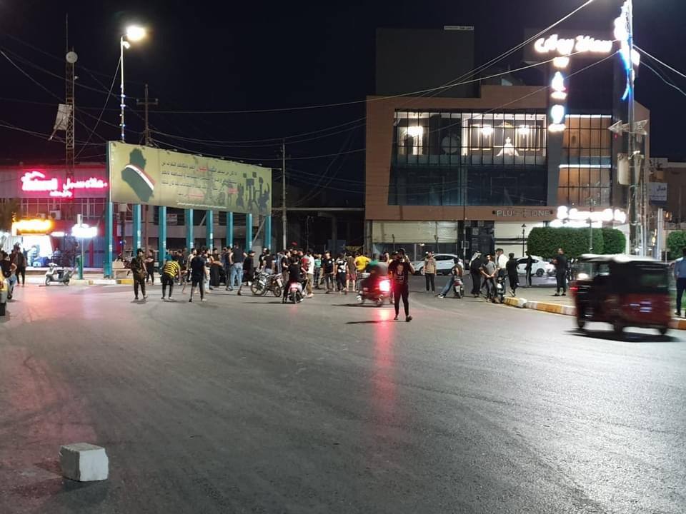 متظاهرو كربلاء يقطعون جميع الشوارع المؤدية الى فلكة التربية احتجاجا على اغتيال ايهاب الوزني