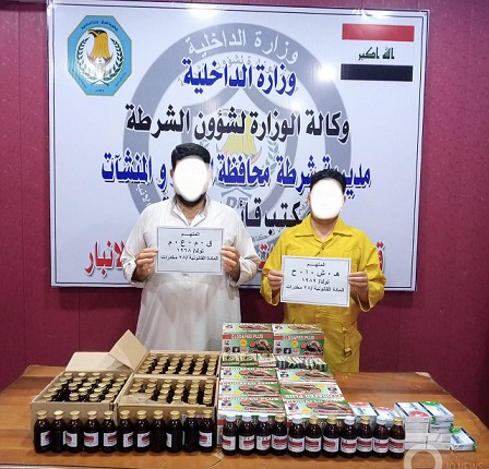 أعلنت قيادة شرطة الأنبار، الاثنين (17 أيار 2021)، اعتقال متهمين اثنين بترويج المخدرات وضبط كميات كبيرة منها بحوزتهما في قضاء الرطبة بالمحافظة.