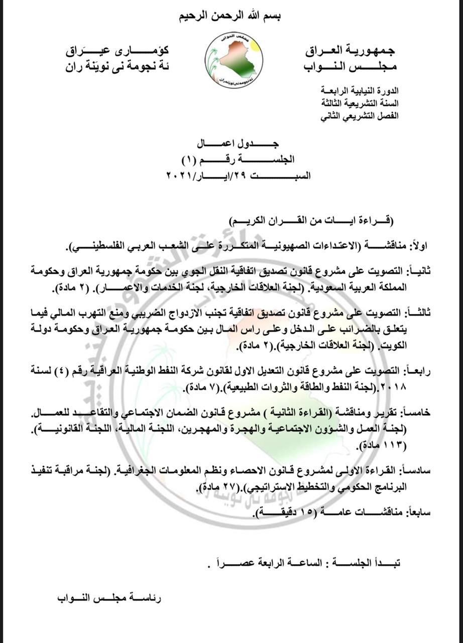 البرلمان يحدد السبت المقبل موعدا لانعقاد جلسته ويضع القضية الفلسطينية في جدول اعماله