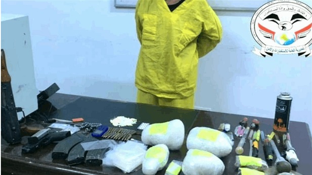 واضافت "بعد تفتيش منزل المتهم تم العثور أيضا على اكياس أخرى تحتوي على مواد مخدرة مختلفة بالإضافة الى أسلحة خفيفة أخرى وأدوات تعاطي".