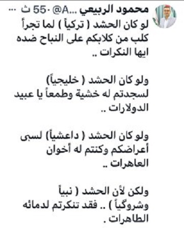 المتحدث باسم المكتب السياسي لكتلة صادقون مغرّداً حول التطاول على الحشد الشعبي