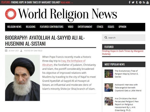 نشر موقع "وورلد ريليجس نيوز" العالمي المتخصص بشؤون الأديان والطوائف، مقالاً مفصّلاً عن حياة ومواقف المرجع الديني الأعلى في العراق، سماحة السيد علي الحسيني السيستاني "دام ظلّه الوارف".