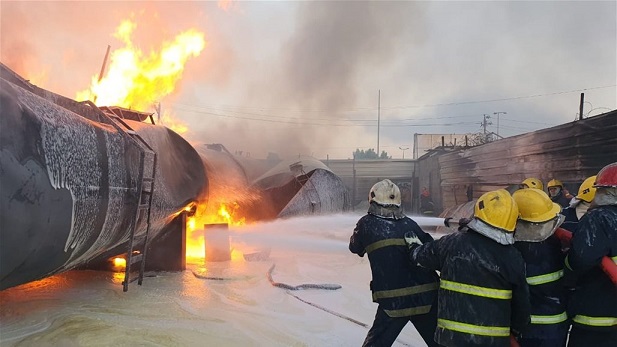 وأضاف المصدر أن "فرق الدفاع المدني تكافح الحادث في محاولة للسيطرة على النيران".