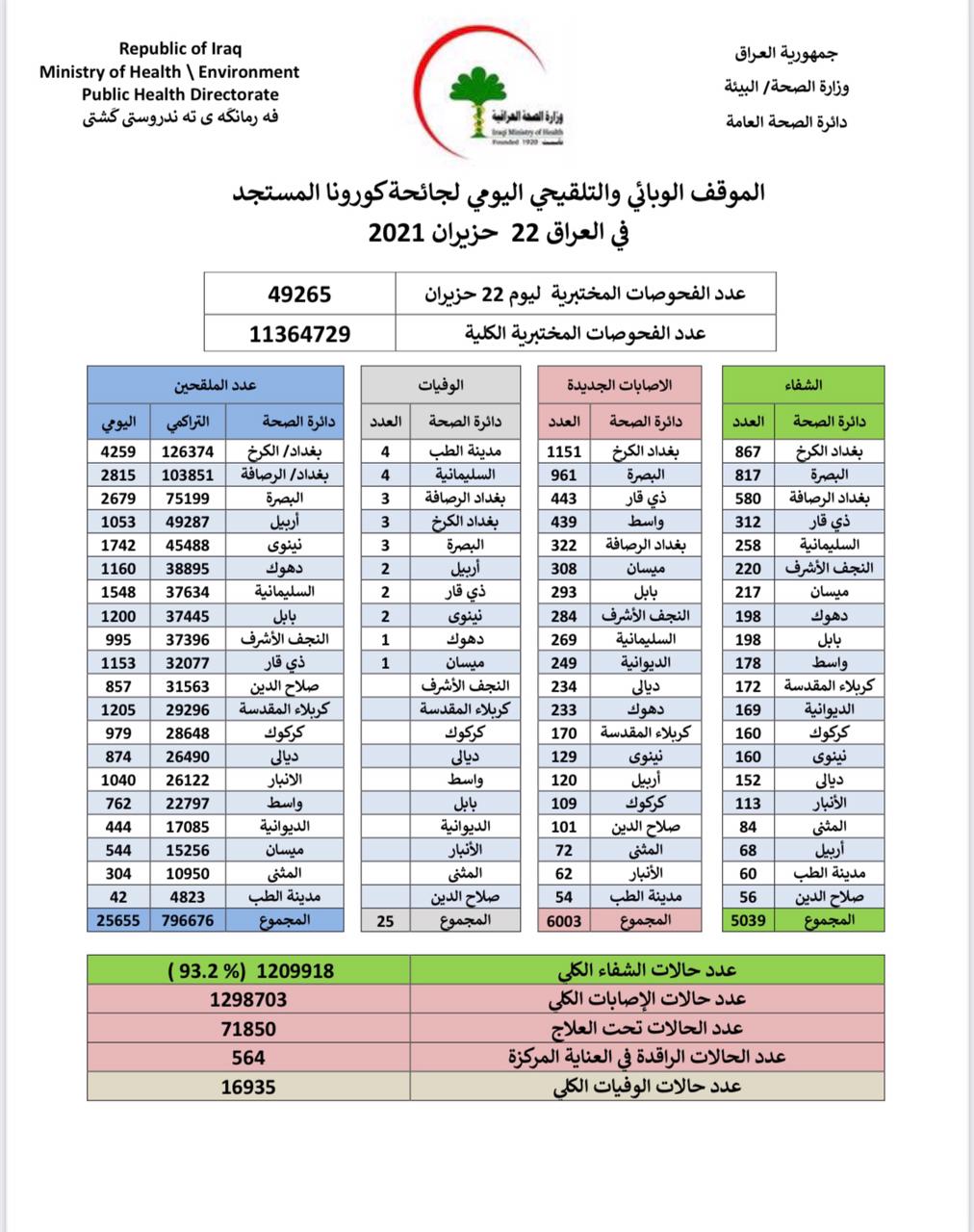 الموقف الوبائي في العراق يعاود الارتفاع من جديد