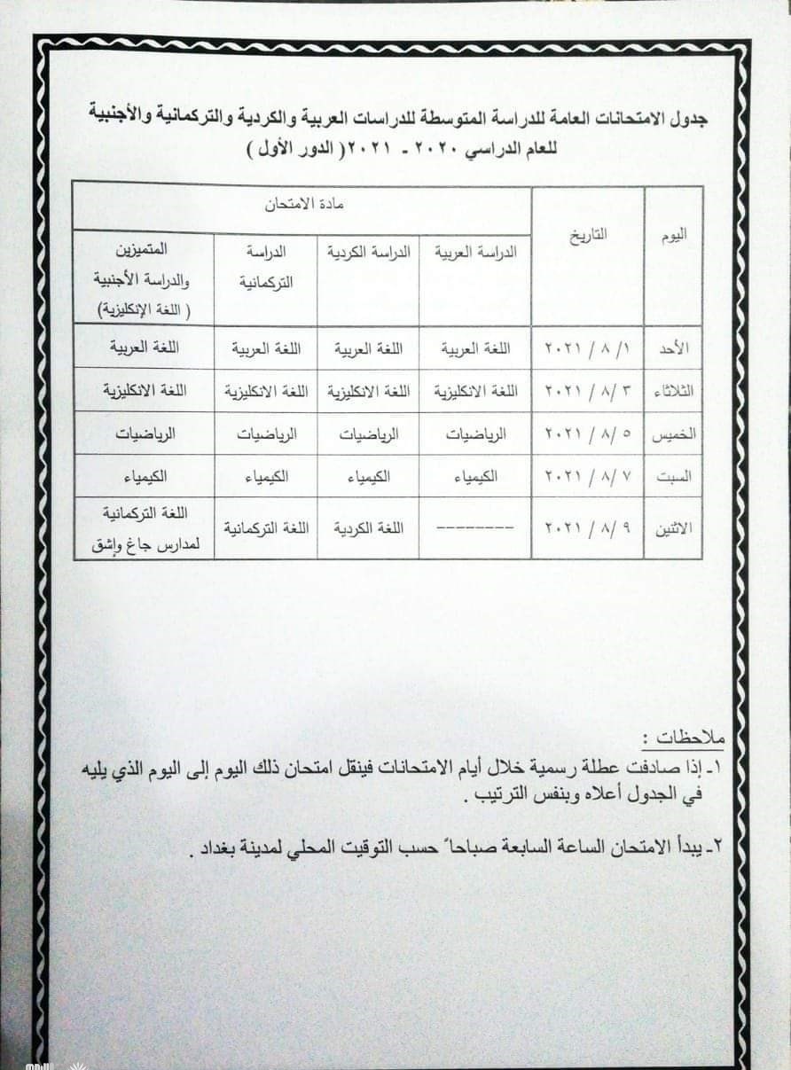 التربية تعلن الـ1 من شهر آب موعدا لإجراء امتحانات الصف الثالث المتوسط