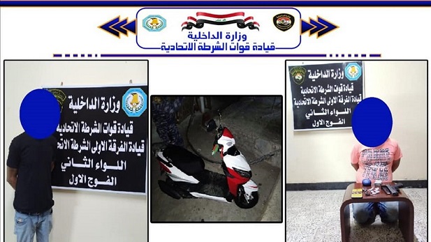 وذكرت القيادة في بيان أنه "ضمن الجهود الأمنية المستمرة لقطعات الشرطة الاتحادية في ملاحقة الخارجين عن القانون من تجار ومتعاطي المواد المخدرة، ألقت قوة من اللواء الثاني الفرقة الأولى شرطة اتحادية القبض على متهمين بتعاطي وترويج المواد المخدرة في منطقة (البلديات) شرقي بغداد، يستقلان دراجة نارية وبحوزتهما كيس صغير يحتوي على مادة الكرستال المخدرة، بالإضافة الى حيازتهما مسدس صوتي".