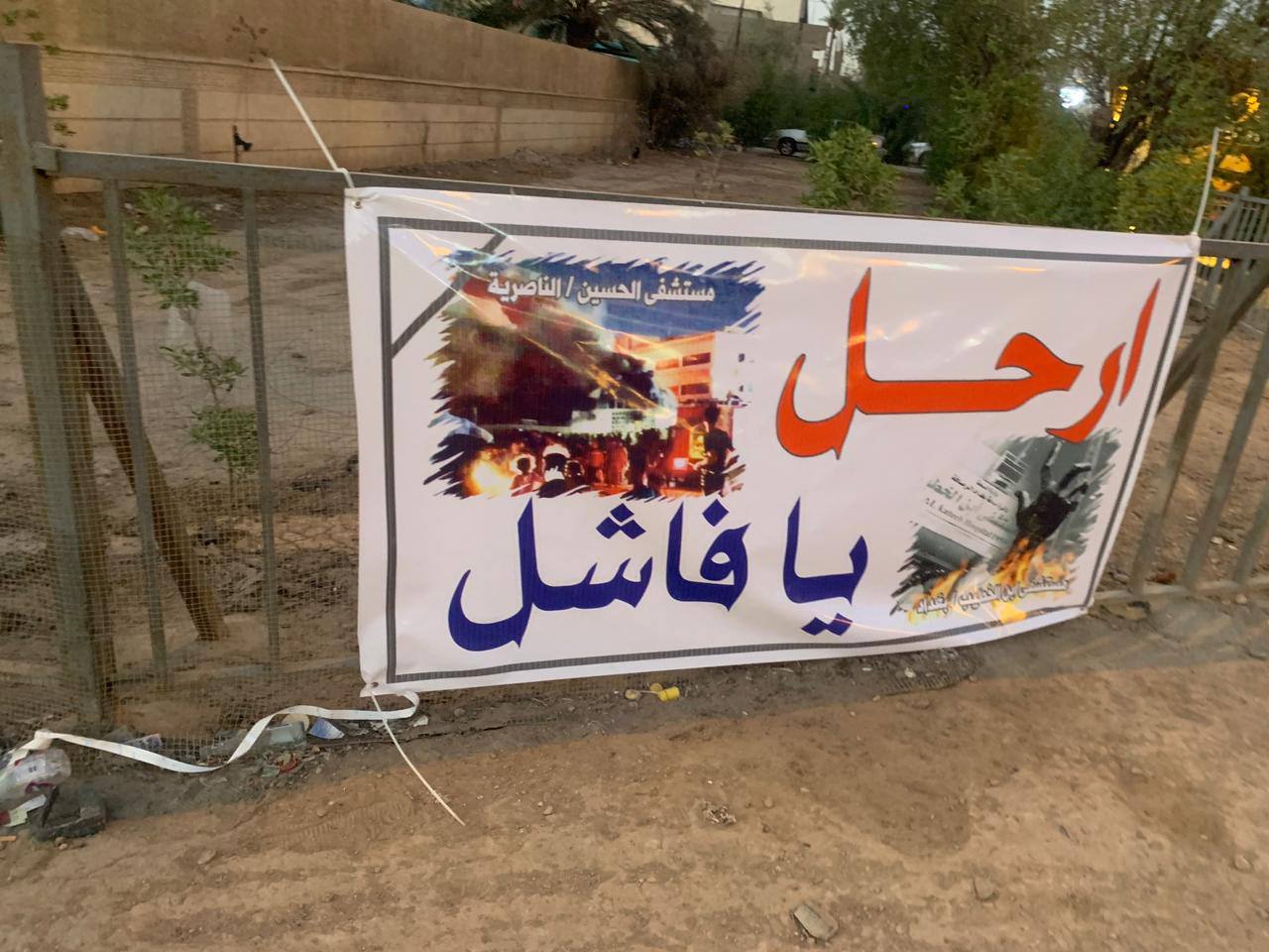 انتشار يافطات في شوارع بغداد تحمل عبارة " ارحل يا فاشل " مطالبة مصطفى مشتت بالاستقالة .