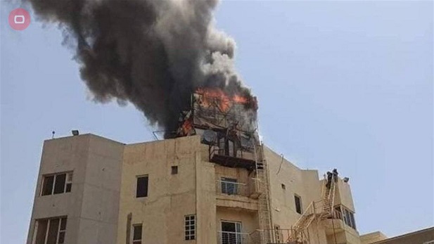واضافت ان "الحريق نشب في الطابق العلوي لفندق زمزم السياحي وأوقع خسائر مادية فقط".