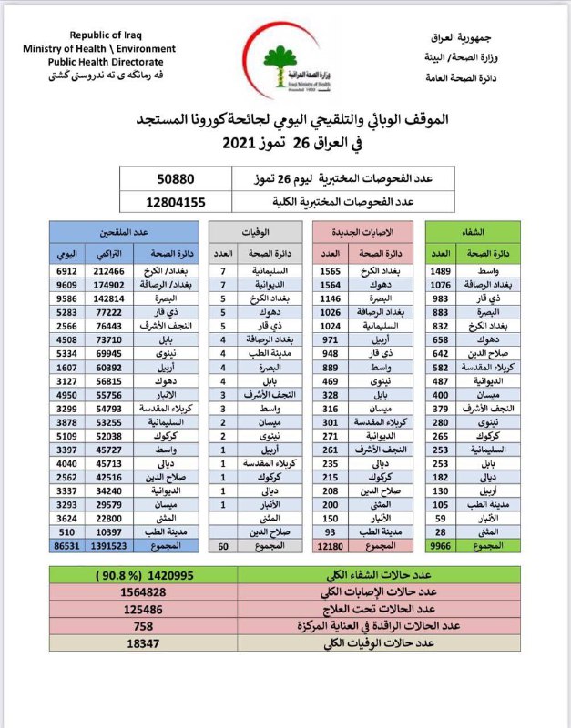 في اعلى حصيلة ... وزارة الصحة تسجل 12180 إصابة جديدة بفيروس كورونا و 60 حالة وفاة!