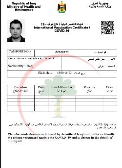 وقال عضو اللجنة، جواد الموسوي، في بيان له، إنه "لا صحة للمعلومات المنشورة حول وجود تعليمات معقدة من وزارة الصحة لترجمة كارت اللقاحات او مراجعات متكررة لتأييد كارت اللقاح الحالي او تبديله".