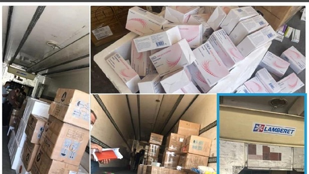 واضافت، انه "تم تفتيش العجلة وتبين وجود قطع وخلف القطع تم تخزين ادوية مهربة بكميات كبيرة والخاصة بعلاج (كورونا) وامبولات كوفيد (١٩) تستخدم لزرقها تحت الجلد، لمنع التجلط"، مشيرة الى "اتخاذ الإجراءات القانونية بحق السائق والعجلة اصوليا".