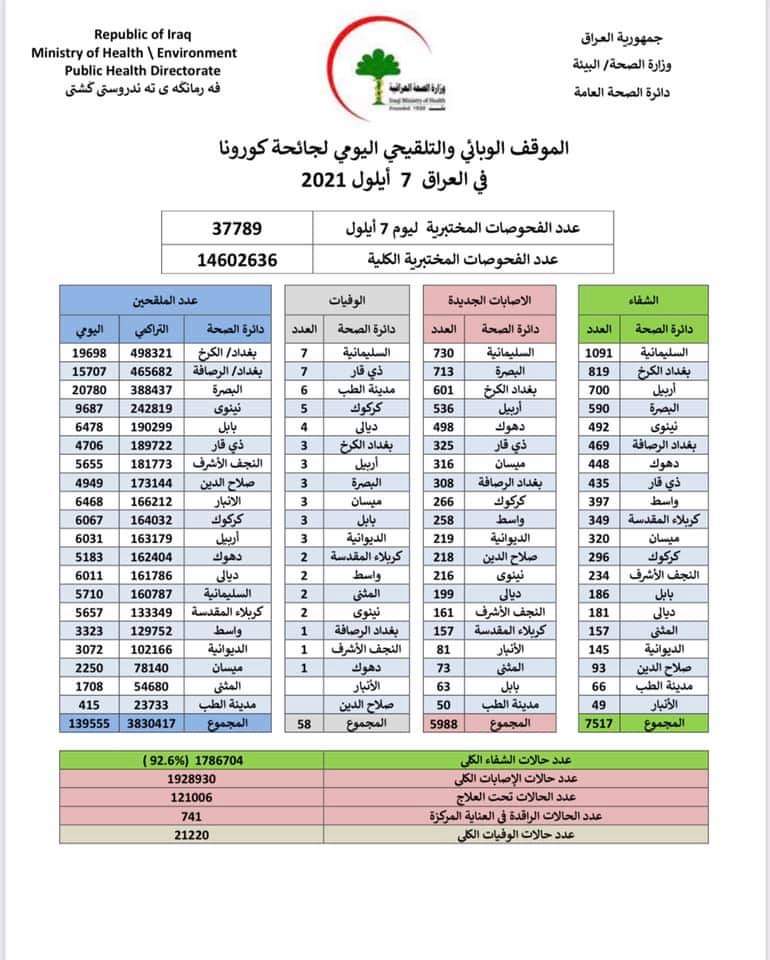 مؤشر الشفاء يعلو الإصابات.. الصحة تعلن الموقف الوبائي