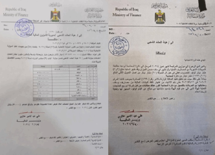 وقالت الهيئة في بيان، إنه "تداولت بعض مواقع التواصل الاجتماعي كتابا صادرا من وزارة المالية إلى هيئة الحشد الشعبي يتضمن تعليق موضوع عودة المفسوخة عقودهم".