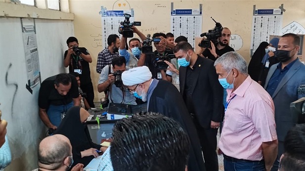 ممثل المرجعية الدينية الشيخ عبد المهدي الكربلائي يدلي بصوته في الانتخابات النيابية