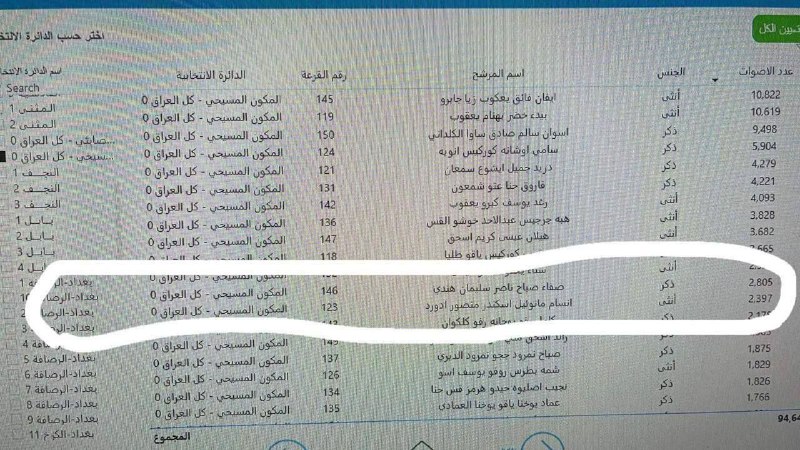 وتداولت معلومات تؤكد فوز المرشحة "انسام مانوئيل اسكندر" وهي مرشحة في جميع دوائر العراق نظراً لكونها عن "كوتا الأقليات" بـ 2397 صوتاً رغم وفاتها منذ شهرين.
