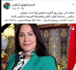 وجاء في منشور كتبته إدارة صفحتها على "فيسبوك": "اولا ارجو من الجميع طلب الرحمة والمغفرة للفقيدة انسام مانوئيل اسكندر.. وعلى اثرها اقتضى التنويه بعد تداول وسائل الاعلام بعض الاخبار عن فوز المرشحة او التشكيك بنزاهة الانتخابات من خلال استغلال الوضع الذي نمر به بفقدان عزيزتنا