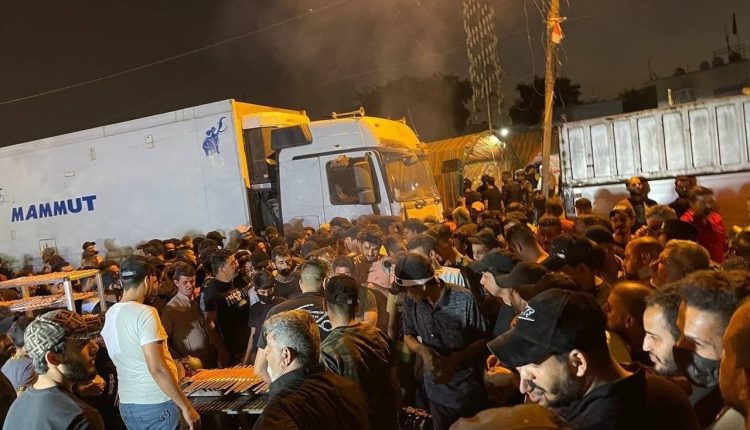 بالصور.. المواكب الحسينية وعدد من الفرق المتطوعة تقدم الدعم اللوجيستي للمحتجين امام بوابة الخضراء