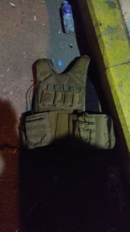 عناصر قوات مكافحة الشغب تنسحب وتترك معداتها الان خلف الجسر المعلق