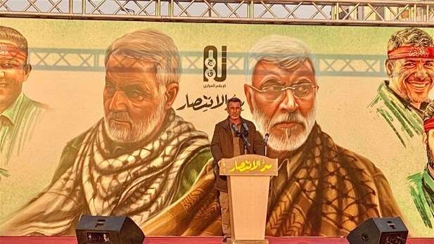 وهذه المرة الأولى التي يعتلي فيها رئيس أركان الحشد الشعبي أبو فدك المحمداوي، المنصة، ليلقي كلمة.