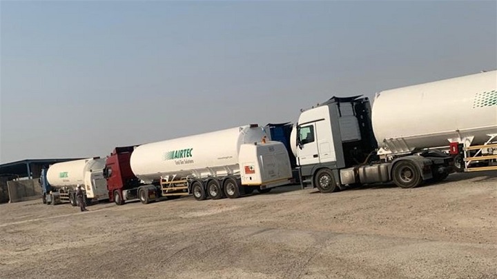وبينت، أن "عدد الصهاريج كان (٢٨) صهريجاً للفترة من ٢٠٢٢/١/١ ولغاية ٢٠٢٢/١/١٥ بعد اكمال كافة الاجراءات الكمركية".