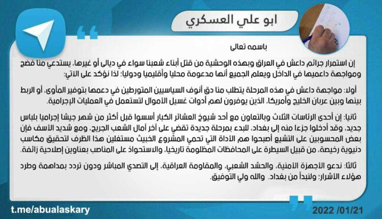 دخل جزء منه إلى بغداد.. العسكري يكشف عن تأسيس جيش اجرامي بواسطة احدى الرئاسات الثلاث